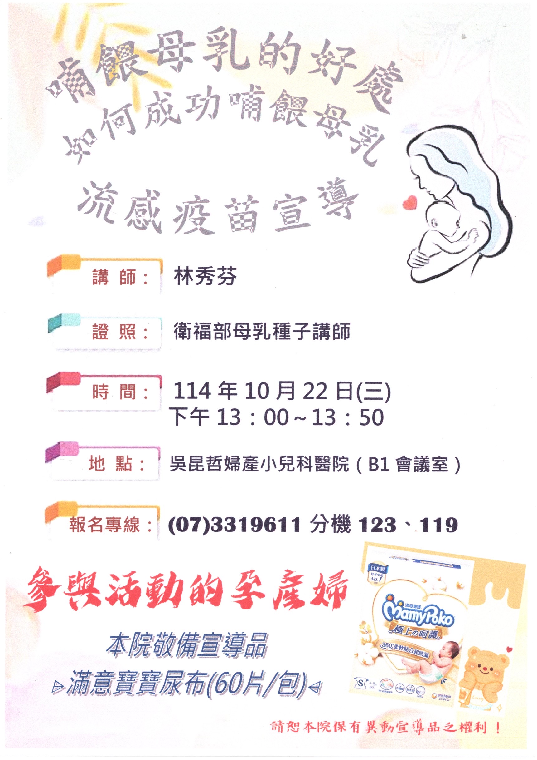 2025-09-29 114/10/22(三)母乳種子講師-林秀芬~哺餵母乳的好處、流感疫苗宣導、如何成功哺餵母乳