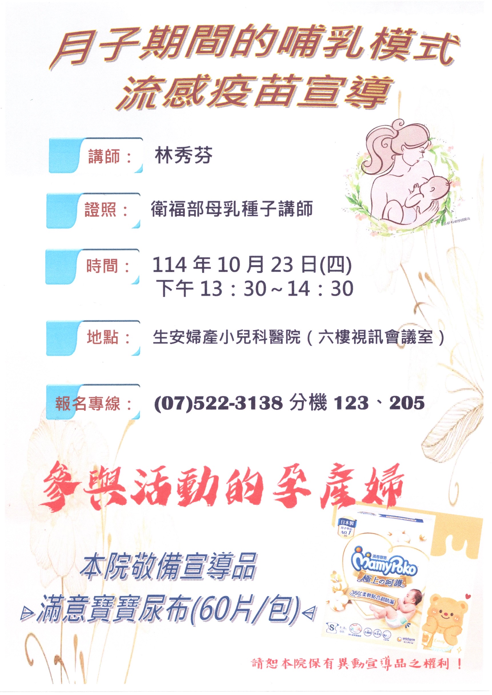 2025-09-29 114/10/23(四)母乳種子講師-林秀芬~月子期間的哺乳模式、流感疫苗宣導