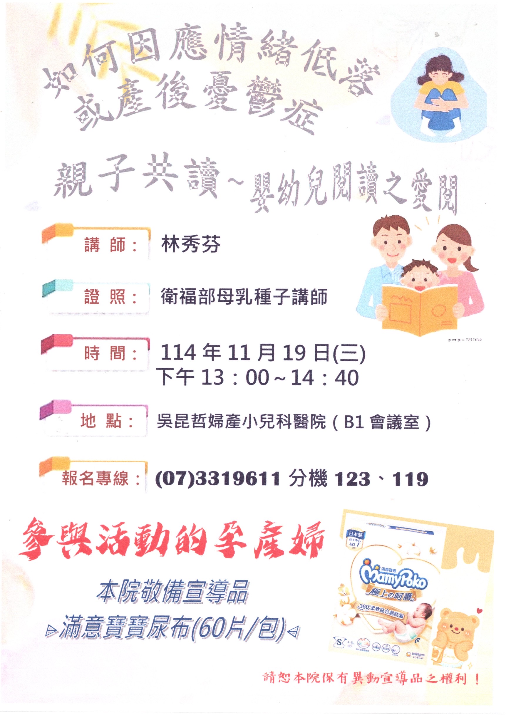 2025-10-23 114/11/19(三)母乳種子講師-林秀芬~如何因應情緒低落或產後憂鬱症+親子共讀