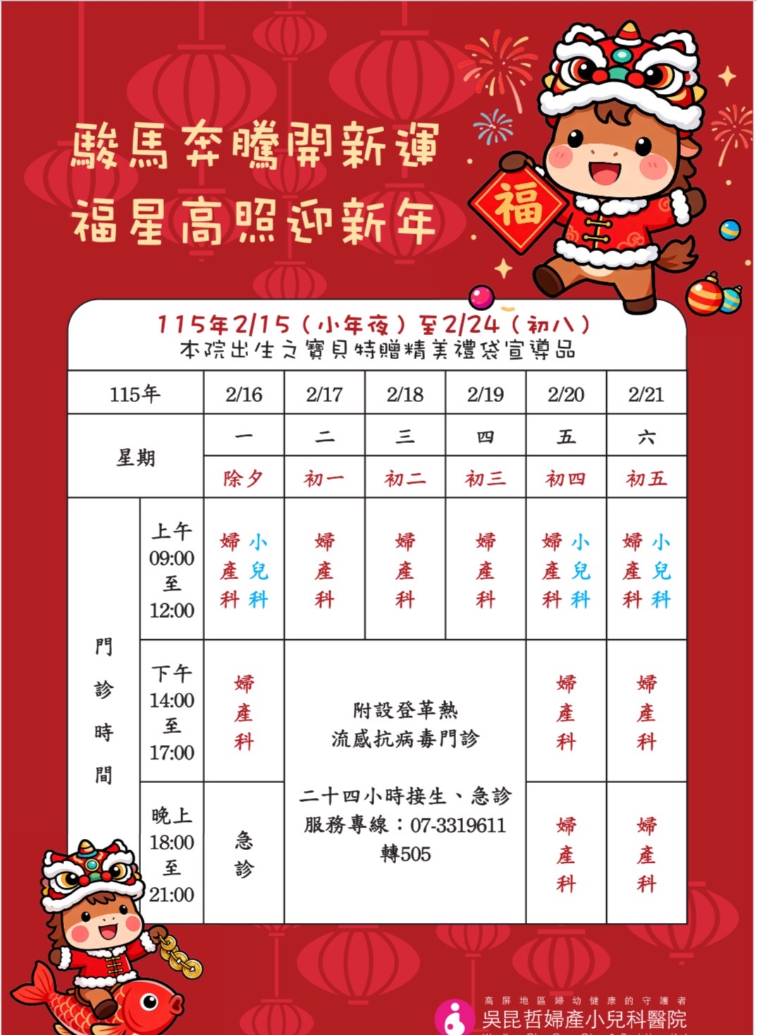 2026-01-16 115年春節期間門診時間表