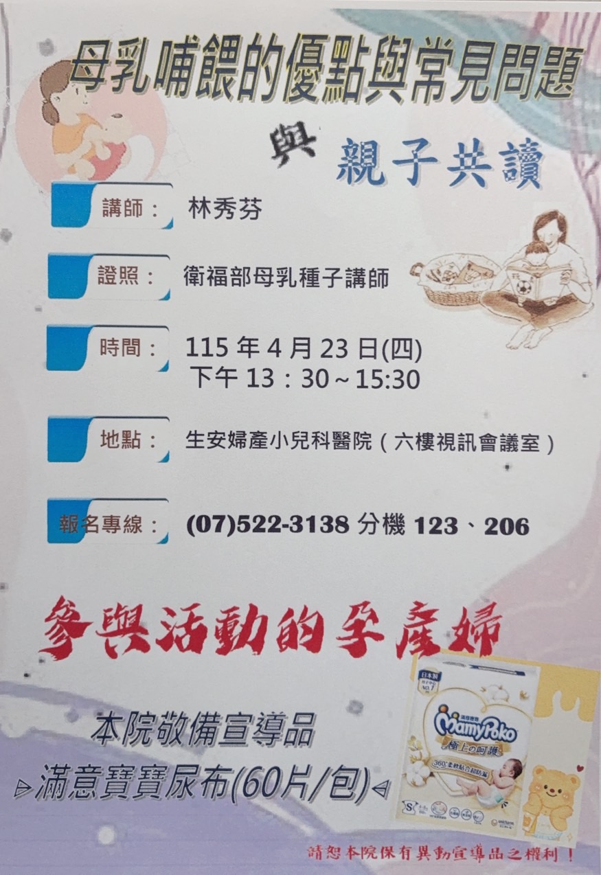 2026-03-24 115/4/23(四)母乳種子講師-林秀芬~母乳哺餵優點及常見問題+親子共讀