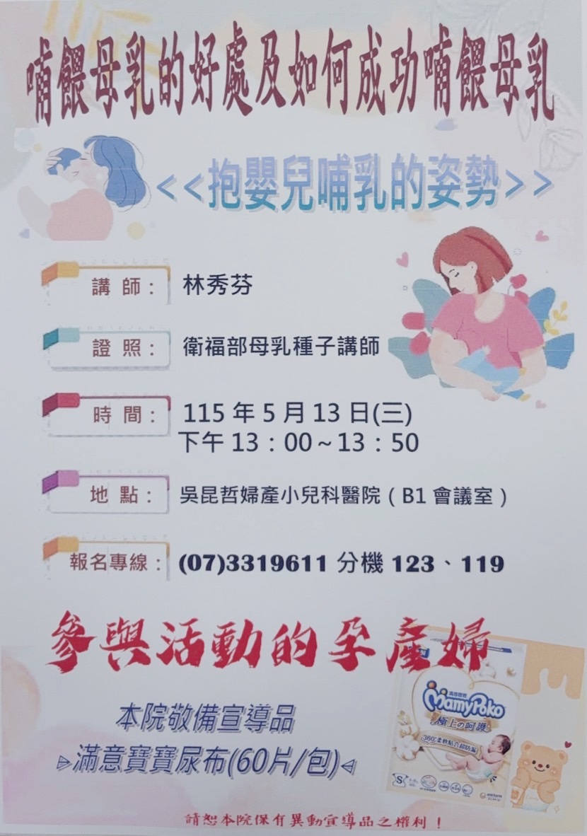 2026-04-20 115/5/13(三)母乳種子講師-林秀芬~哺餵母乳的好處及如何成功哺餵母乳