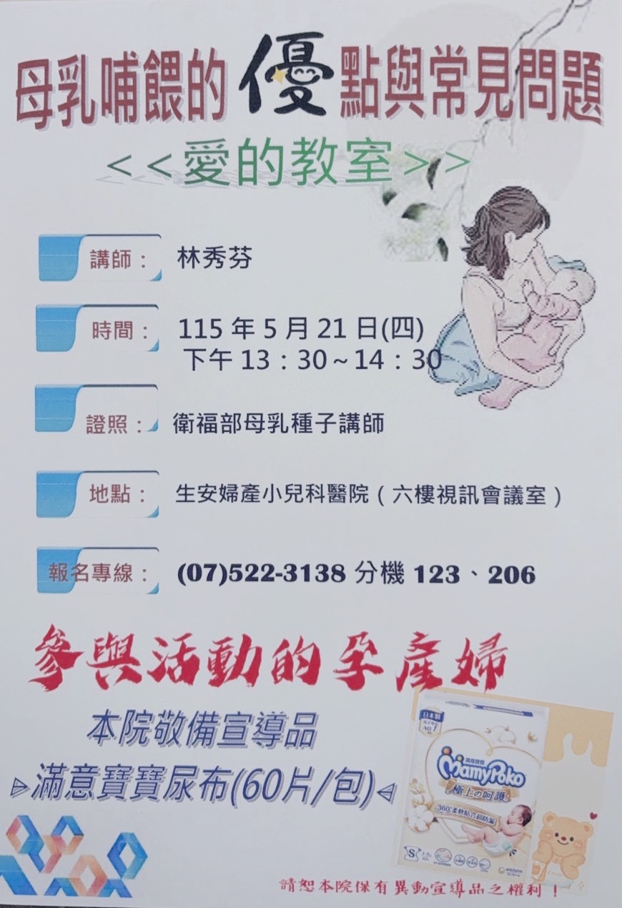 2026-04-20 115/5/21(四)母乳種子講師-林秀芬~母乳哺餵的優點及常見問題